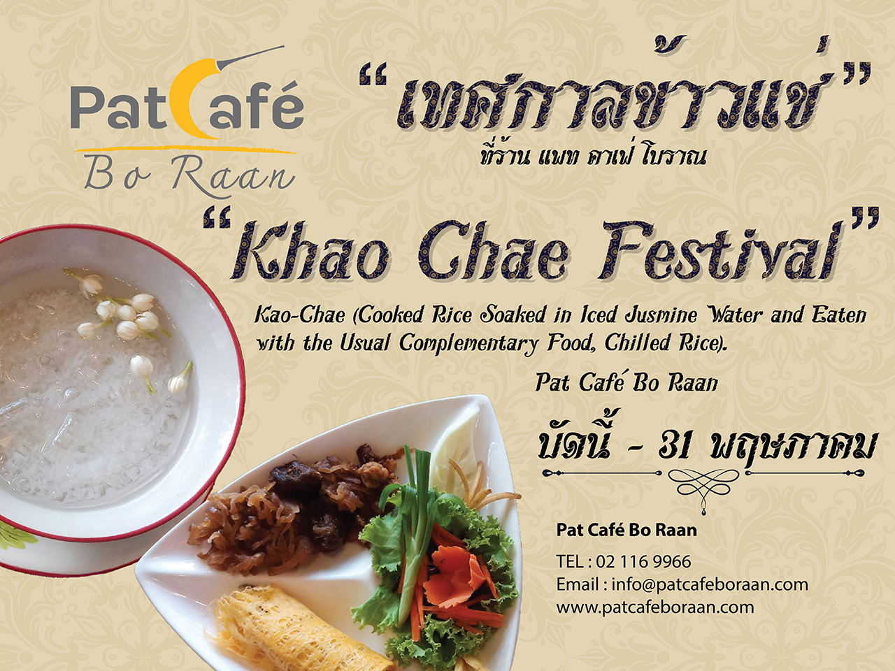 Khao-Chae is Cooked rice soaked in iced jusmine water and eaten with the usual complementary food, Chilled Rice